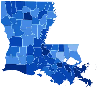Consequently, Smith and Arkansas Senator Joseph T. Robinson won Louisiana with 76.29 percent of the popular vote, to 23.70 percent for Hoover and Senate Majority Leader Charles Curtis of Kansas. Only in two parishes—Livingston and Washington, both proximate to the deeply anti-Catholic Mississippi Pine Belt and Florida panhandle—did Hoover pass forty percent of the vote, while in many Acadian parishes Hoover underperformed Calvin Coolidge by over thirty points. Louisiana was Smith's third strongest state in the election, after South Carolina and neighboring Mississippi.[13]