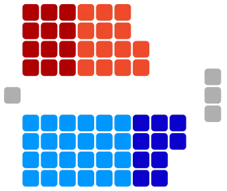 The Volksraad had a total of 60 members, 38 of which were elected and 22 appointed.[1] Seats were also assigned to ethnic groups, with 25 for the Dutch population (15 elected, 10 appointed), 30 for the native population (20 elected, 10 appointed) and five for the Chinese population (3 elected, 2 appointed).[1]