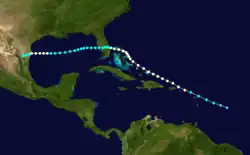 Throughout the hurricane's path from the Caribbean, to Florida, and finally into Texas and Mexico, 39 people were killed. 31 deaths occurred in Mexico,[22] six in Saint Kitts,[23] and one in both the Bahamas and Texas.[24][11] Although figures from Mexico were unavailable, total losses from the storm in the United States reached about $3 million, inclusive of Florida and Texas, though figures for the latter state varied from $500,000 to $1.75 million, according to various sources.[25][26][27][28]