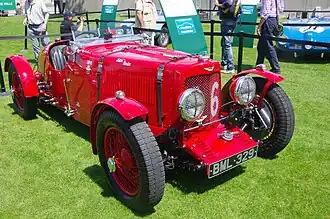 British cars dominated the medium-sized categories. There were six Rileys entered, including a squad of four works cars. Following on from its successful Brooklands Six racer of the start of the decade, two new designs were unveiled in 1934. The MPH had a 1458cc straight-six engine that now put out 70 bhp, while the Riley Nine Imp, was a short-wheelbase, low-slung version of the Riley Nine, with its 50 bhp 1087cc 4-cylinder engine. For their racing debuts, five cars were brought to Le Mans. Two of the MPHs were entered, for Freddie Dixon / Cyril Paul and Frenchmen Jean Sébilleau / Georges Delaroche. There were also three Imps, including a private effort sponsored by Dorothy Champney (who would soon marry managing director Victor Riley), who had Kay Petre as her co-driver. Those five cars all had the new Wilson pre-selector gearbox.[15] The works team also entered their last, unsold, Brooklands Nine taking the Biennial Cup spot. It was the one raced the previous year by Sébilleau / Delaroche and given to Ken Peacock and Bill van der Becke, who had earned the entry in that race finishing fourth.[15]