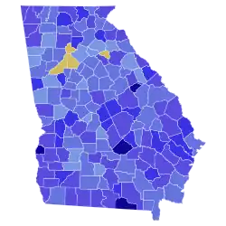 Under the county unit system, the 159 counties in Georgia were divided by population into three categories. The largest eight counties were classified as "Urban", the next-largest 30 counties were classified as "Town", and the remaining 121 counties were classified as "Rural". Urban counties were given 6 unit votes, Town counties were given 4 unit votes, and Rural counties were given 2 unit votes, for a total of 410 available unit votes. Each county's unit votes were awarded on a winner-take-all basis.[2][3]