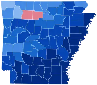 The 1920s did see a minor change in this, as increased voting by poor Ozark whites as a protest against Woodrow Wilson's internationalist foreign policy meant that Warren G. Harding was able to win almost forty percent of the statewide vote in 1920;[4] however despite his national landslide Calvin Coolidge in 1924 could not do any more than win the two traditional Unionist GOP counties. 1928 saw the rest of the Outer South and North Alabama bolt the anti-Prohibition Catholic Al Smith, but the presence of Arkansas Senator Joseph Taylor Robinson as running mate meant that within Arkansas only the most northwesterly counties with ordinarily substantial Republican votes would suffer the same fate.[5]
