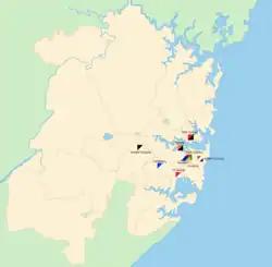 The geographical locations of the teams that contested the 1937 premiership across Sydney.