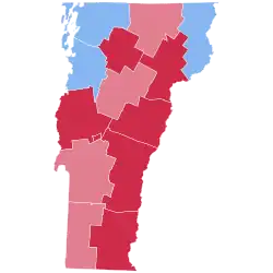 Whereas Vermont had been the most Republican state in the union in the 1930s, a strong swing against Roosevelt in the Midwest pushed Vermont into being only the fifth most Republican state after South Dakota, Nebraska, Kansas and North Dakota,[2] although it still registered as a strong twenty percent more Republican than the national average. Willkie carried ten of the state's 14 counties, breaking 60% in 6. However, the three northwestern counties of Vermont had been Democratic enclaves in an otherwise Republican state throughout the 1930s and 1940s, and Roosevelt once again won Chittenden County, Franklin County and Grand Isle County for the Democrats. Roosevelt also managed to carry for the first time rural Essex County in the northeast of the state, being the first Democrat to do so since Martin Van Buren in 1836. [3]