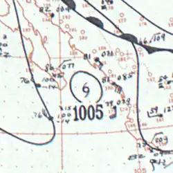 ![]() Surface weather analysis of the hurricane on September 10 | |