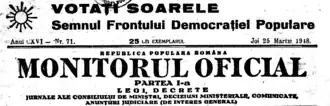 Parliamentary elections were held in Romania on 28 March 1948.[1] They were the first elections held under communist rule; the communist-dominated parliament had declared Romania a people's republic after King Michael was forced to abdicate in December 1947.[2][3]