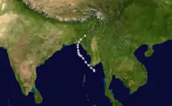Produced torrential rain over northeastern India, with Cherrapunji recording 1,340 mm (53 in) of precipitation over a four-day span.[11]