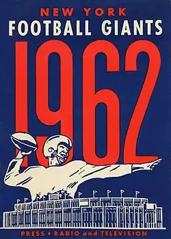 The 1962 New York Giants season was the franchise's 38th season in the National Football League. Giants quarterback Y. A. Tittle had a breakout season in 1962. Said Cold Hard Football Facts, "It's safe to call Tittle a late bloomer. He enjoyed various degrees of success in his first 14 seasons with three teams in two different pro football leagues. But then in 1962, at the age of 36 and under second-year head coach Allie Sherman, Tittle exploded for a record 33 TD passes to lead the Giants to a 12–2 record."[1]