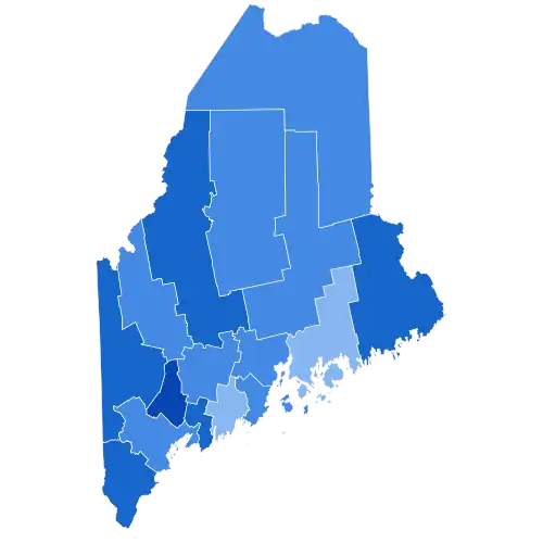 He was the first Democrat to carry Somerset County since Martin Van Buren in 1836,[1] the first since Pierce to carry the counties of Franklin, Oxford, Penobscot and Piscataquis and the first since Winfield S. Hancock in 1880 to carry Aroostook County.[2] Populous Cumberland County, along with Lincoln County, had last voted Democratic for Woodrow Wilson in 1912, while the counties of Hancock, Knox and Waldo had last supported a Democrat when giving Wilson a plurality in 1916.[2]