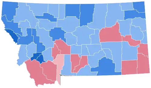 As of the 2024 presidential election, this is the last election in which the following counties have voted for a Democratic presidential candidate: Yellowstone, Flathead, Ravalli, Park, Custer, Richland, Fergus, Granite, Powell, Teton, Carbon, Chouteau, Wheatland, Judith Basin, Pondera, Golden Valley, Toole, Liberty, Treasure, Musselshell, Phillips, Daniels, and Petroleum.[1]