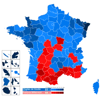 Presidential elections were held in France on 5 December 1965, with a second round on 19 December. They were the first direct presidential elections in the Fifth Republic and the first since the Second Republic in 1848. It had been widely expected that incumbent president Charles de Gaulle would be re-elected, but the election was notable for the unexpectedly strong performance of his left-wing challenger François Mitterrand.