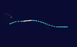 According to the Joint Typhoon Warning Center and Japan Meteorological Agency, on October 20 Tropical Storm Kathy crossed the International Dateline, entering into CPHC's area of responsibility;[14][15] however, this storm was not included into CPHC database. The storm eventually became extratropical on October 21 over open waters.