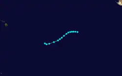 On September 10 a tropical depression was located by the Joint Hurricane Warning Center (JHWC) and was designated Tropical Depression Twenty-two and was heading westward. During the morning of the 12th, the depression passed 240 miles south of the island of Hawaii. It dissipated that night. The depression caused heavy rainfall throughout the Hawaiian Islands during the 12th.[7] The reason that this depression was named 22 is unknown, but it is probably because it was numbered with the Western Pacific storm numbers.