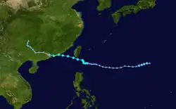 Tropical Storm Violet formed east of the Philippines, then traveled westward, becoming a tropical storm before making landfall on Luzon. Violet then crossed the South China Sea before making landfall in China as a weak tropical storm. It dissipated over China shortly after.