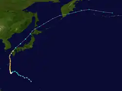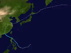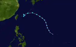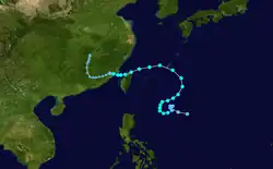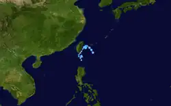 Tropical Storm Ruby formed as a disturbance east of the Philippines. It slowly traveled west-southwest, becoming a tropical storm on the 12th. It crossed the northern part of Luzon before making landfall in China on the 15th.[2] The storm became extratropical over China, and proceeded northwest, crossing Hokkaido before dissipating over the Aleutian Islands.