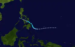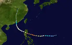 Forming on June 28, Pamela slowly travelled towards the Philippines, and made landfall late on June 30. The tropical storm brought rains and winds to the Philippines, but no major damage was reported. Having greatly weakened after landfall, Pamela degenerated into a remnant low and dissipated over the South China Sea on July 1, just as Category 5 Super Typhoon Olga reached its peak.