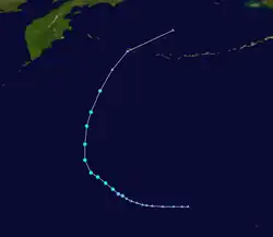 Tropical Storm Therese also remained far at sea during its life. It formed as a disturbance on the 30th, then turned northwestward and became a tropical storm, before undergoing extratropical transition and dissipating over the Bering Sea.