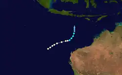 The next system, Cyclone Leah, formed near the coast of Western Australia on 27 February. Moving southwestward, Leah eventually dissipated on 11 March.