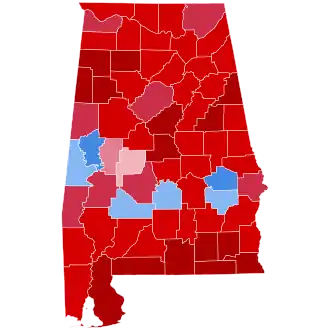 | Talladega | 12,763 | 73.12% | 4,567 | 26.16% | 125 | 0.72% | 8,196 | 46.96% | 17,455 |
