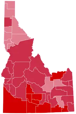 In a state that would reflect McGovern's national results,[5][6] the Democratic nominee did not win a single county in Idaho. In fact, John G. Schmitz, running under the "American Independent" banner as a remnant of George Wallace's 1968 campaign, ran second ahead of McGovern in Fremont, Jefferson, Lemhi and Madison Counties.[7] Although due to the salience of the civil rights issue there had occurred numerous cases of unpledged and "Dixiecrat" candidates receiving almost the entire vote of Deep Southern counties, and a smaller number in other antebellum slave states, Schmitz' performances in Jefferson County was at the time the best by a third-party presidential candidate in any non-Southern county since 1936 when William Lemke reached over twenty-eight percent of the vote in the North Dakota counties of Burke, Sheridan and Hettinger.[8] With 9.30% of the popular vote, Idaho would be Schmitz's strongest state in the 1972 election.[9]