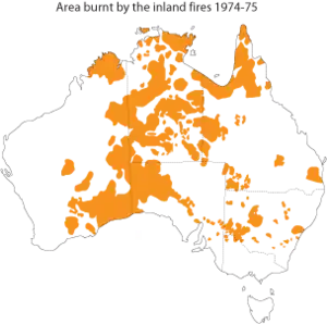 4. ^ a b Cheney, N. P. (1 January 1995). "BUSHFIRES – AN INTEGRAL PART OF AUSTRALIA'S ENVIRONMENT". 1301.0 – Year Book Australia, 1995. Australian Bureau of Statistics. Retrieved 14 January 2020. In 1974-75, lush growth of grasses and forbs following exceptionally heavy rainfall in the previous two years provided continuous fuels through much of central Australia and in this season fires burnt over 117 million hectares or 15 per cent of the total land area of this continent.