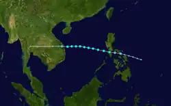 Kit developed on December 18 in the open Pacific. Upon hitting the Philippines, the system weakened to a tropical depression. The storm re-intensified to a tropical storm in the South China Sea before dissipating on December 24.