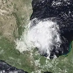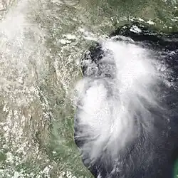 At 1200 UTC on August 7, Bess attained its minimum barometric pressure of 1,005 mbar (29.7 inHg). Thereafter, Bess began to turn nearly due southward under the influence of a high-pressure area over southern Texas. Later on August 7, the storm reached its maximum sustained winds of 50 mph (80 km/h). Early on August 8, Bess made landfall near Nautla, Veracruz, at the same intensity and then rapidly dissipated inland.[25] In Tuxpan, Veracruz and Tampico, Tamaulipas, sustained winds reached only 29 mph (47 km/h).[26] The storm also produced heavy rainfall, peaking at 12.04 in (306 mm) in La Estrella.[27] However, no flooding occurred and no damage or fatalities were reported.[26] Its remnants emerged into the Pacific Ocean, leading to the formation of Hurricane Iva.[28]