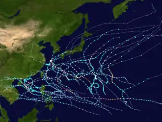| Carmen (Iliang) | August 9 – 20 | Typhoon | 165 km/h (103 mph) | 965 hPa (28.50 inHg) | Ryukyu Islands, East China, Korea | Unknown | 33 | |