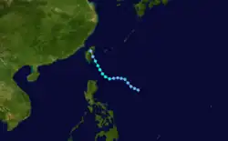 | Susang | September 13 – 19 | Tropical depression | 55 km/h (34 mph) | 1000 hPa (29.53 inHg) | Palau, Philippines, Vietnam | None | None | |
