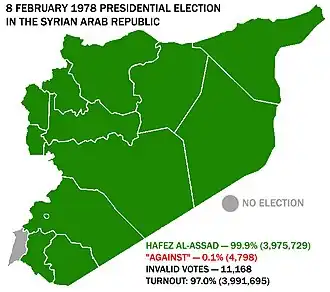 Presidential elections were held in Syria on 8 February 1978.[1] There was only one candidate, Hafez al-Assad, with voters asked to approve or reject his candidacy. A reported 99.9% of voters voted in favour, with a turnout of 97,0%.[2]