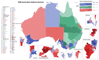 The 1980 Australian federal election was held in Australia on 18 October 1980. All 125 seats in the House of Representatives and 34 of the 64 seats in the Senate were up for election. The incumbent Liberal–NCP coalition government, led by Prime Minister Malcolm Fraser, was elected to a third term with a much reduced majority, defeating the opposition Labor Party led by Bill Hayden. This was the last federal election victory for the Coalition until the 1996 election.