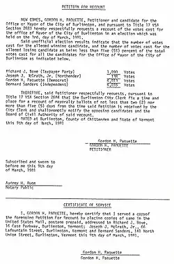 26. ^ "Mayoral Recount Unchallenged". The Burlington Free Press. March 19, 1981. p. 11. Archived from the original on December 3, 2020 – via Newspapers.com.