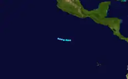 On July 30 and 31, a tropical disturbance crossed Central America. At a low latitude, a tropical depression was declared on August 3.[7] At first, the storm was expected to turn west-northwest,[17] but it continued west instead.[7] Nine-E failed to intensify despite being situated over warm water. The depression dissipated on August 7 later over somewhat cooler water.[7]