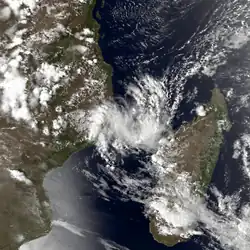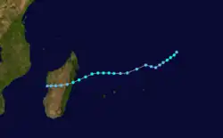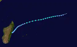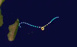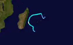 During the season, advisories were issued by Météo-France's (MFR) meteorological office at Réunion. At the time, the MFR area of warning responsibility was from the coast of Africa to 80° E, and the agency primarily used the Dvorak technique to estimate the intensities of tropical cyclones.[1] The Joint Typhoon Warning Center (JTWC), which is a joint United States Navy – United States Air Force task force that issues tropical cyclone warnings for the region,[2] also tracked a long-lived tropical storm in November in addition to the 8 storms MFR named,[3][4][5][6][7][8][9][10][11] which is comparable to the average of nine named storms per year.[12] Following the season, the boundary for the basin was extended to 90° E.[13]