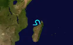 On February 9, MFR first classified the system as a tropical depression about 400 mi (645 km) east of the northern tip of Madagascar. Never warned on by the JTWC, the storm moved southwest. After briefly weakening into a tropical disturbance, the storm suddenly re-intensified into a moderate tropical storm as Esitera re-curved to the southwest. On February 11, MFR stopped keeping an eye on the system.[8]