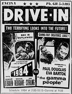 Drive-in advertisement from 1956 for 1984 and co-feature, The Gamma People.