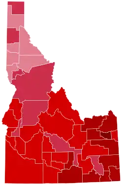 Idaho weighed in for this election as 27.75 percentage points more Republican than the national average and with 72.36 percent of the popular vote, made it Reagan's second strongest state after neighboring Utah.[3]