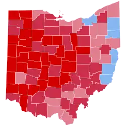 While Pennsylvania and much of the Upper Midwest shifted more Democratic in this election, Ohio voted in line with the nation, presaging its role as the only large Midwestern state (and indeed as the only large state outside the South) to vote Republican in 2000, 2004, and 2020. However, Ohio's delegation in the United States House of Representatives switched from Republican to Democratic control despite Reagan's victory in the state.[2]