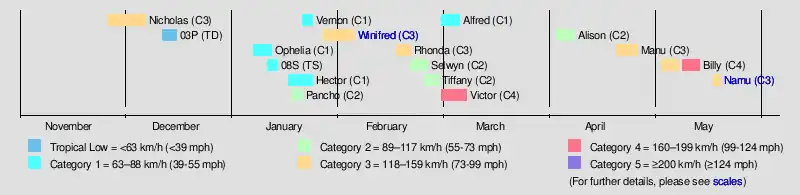 1. ^ a b c d e f g h i j k l Australian Meteorological Magazine Vol 34 No 3 (September 1986) The Australian tropical cyclone season 1985–86