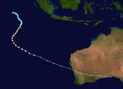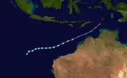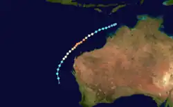 Tropical Cyclone Victor occurred from 2 March until 9 March 1986 and was the most severe cyclone of the Australian region for the season. It remained off the Western Australian coast for all its life. Its estimated lowest pressure was 930 hPa and highest gusts about 255 km/h.[1]