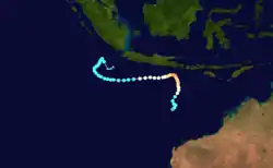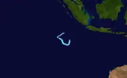 Tropical Cyclone Nicholas originated from a broad area of low pressure associated with a monsoonal trough south of Sumatra on November 25. It tracked south and gradually organized itself and became a tropical cyclone early on November 29. It then began to move east and passed through major shipping routes near Christmas Island, though none of the ships record any extensive winds from the nearby cyclone. Nicholas, while remaining a small system, continued to intensify and by December 3 reached a peak intensity as a category four cyclone with winds of 115 mph (185 km/h) 10-min sustained and a pressure of 945 hPa. Afterwards the cyclone turned almost directly south and gradually weakened. On December 7 the Nicholas's convection began to wane and the system had fully dissipated by that evening.[1]