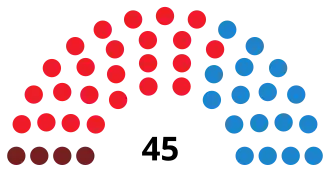 Last election 25 seats, 43.7% 16 seats, 31.5%[a] 1 seat, 7.5%
