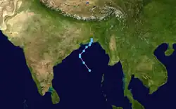 The final storm of the season, which formed in the eastern Bay of Bengal on November 9, hit eastern India as a 45 mph tropical storm on the 15th. It dissipated the next day over the country.