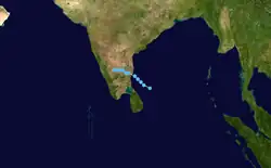The Cyclonic storm brought torrential rain and flash floods across southern India when it made landfall. Twenty-four-hour rainfall totaled 480 millimetres (19 in) at Karaikal.[5] As a direct result of the flooding at least 40 people died.[6]