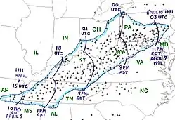 1. ^ a b c "The West Virginia Derecho of 1991". Storm Prediction Center. Retrieved May 3, 2017.