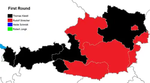 Presidential elections were held in Austria on 26 April 1992, with a second round held on 24 May 1992 after no candidate won a majority in the first round. Incumbent president Kurt Waldheim did not seek reelection as he had not gained acceptance in the international community. The strongest party at that time, the Social Democratic Party, proposed the current minister of traffic and nationalized industries, Rudolf Streicher, for the office, while the Austrian People's Party put up career diplomat Thomas Klestil. Streicher won the first ballot by a small margin, but did not obtain the necessary majority of votes to avoid a second round. However, with the candidates of the smaller parties out in the second ballot, and after a recommendation by Jörg Haider to vote for Klestil, the latter won the second round by an unexpectedly wide margin.