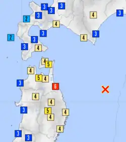 3. ^ a b Disaster Prevention Aomori Prefecture. "Summary of earthquake" (in Japanese). Archived from the original on 2012-01-31. Retrieved 13 July 2011.