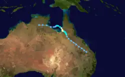 Twice transited Cape York Peninsula before making a final landfall along the southern coast of the Gulf of Carpentaria, in the Northern Territory.[4] Severe flooding triggered by Cyclone Ethel resulted in A$75 million (US$57 million).[5]
