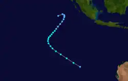 | Peak intensity | 155 km/h (100 mph) (10-min); 955 hPa (mbar) |