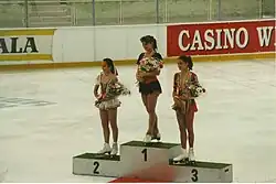 The ladies' podium. From left: Julia Lautowa (2nd), Krisztina Czakó (1st), Júlia Sebestyén (3rd).